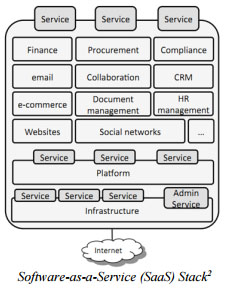 The cloud model is composed of 5 essential characteristics (Ondemand self-services; Broad network access; Resource pooling; Rapid elasticity and Measured service), 3 service models (Software as a Service; Platform as a Service and Infrastructure as a Service) and 4 deployment models (Private cloud; Community cloud; Public cloud and Hybrid cloud).