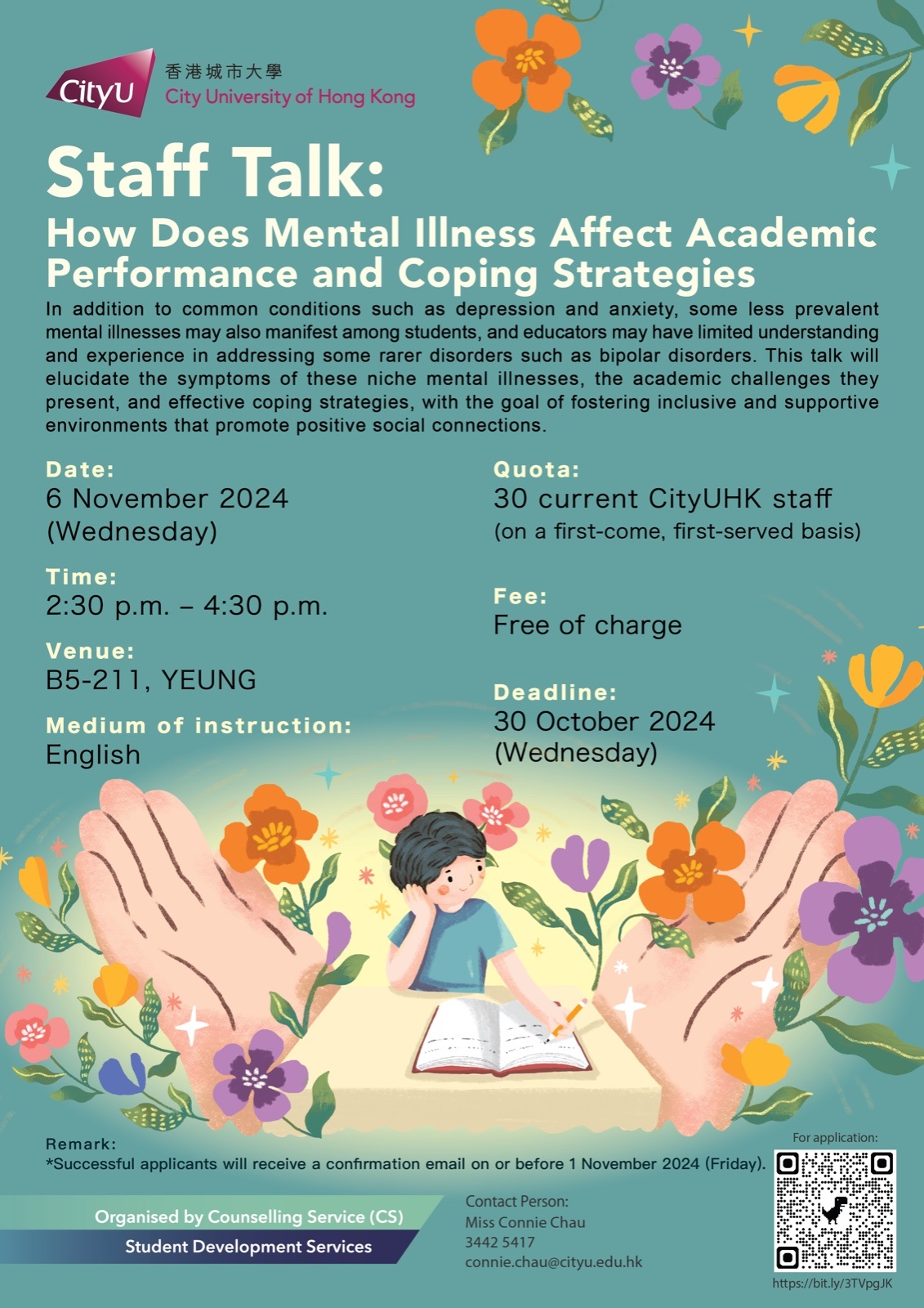 Staff Talk: How Does Mental Illness Affect Academic Performance and Coping StrategiesDate: 6 Nov 2024 (Wed) |