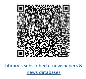You may scan the QR code to enjoy 24/7 access to the Library’s subscribed e-newspapers and news databases with your own smart phone or computer devices.