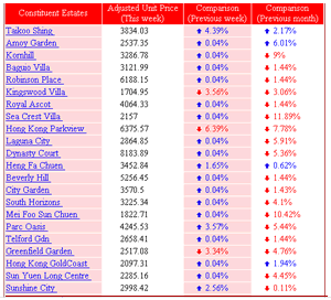 The number of constituent estates will vary, said Dr Alan Wan. "Like the Hang Seng Index, some constituents will be added while others will be dropped during a review process." Consideration for inclusion as a constituent estate, he says, has to satisfy the following criteria: it has high transaction volume and value; a minimum of 12 months in the market after occupancy; and, it is representative of its region. At present, there are 38 constituent estates, including such popular locations like Kornhill Gardens, Royal Ascot, Taikoo Shing, Southern Horizon and Telford Gardens. But, as more and more new property estates have come on stream in the past year, the number is likely to increase.