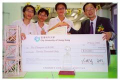 "Without doubt, this competition has further enhanced our interest in structural engineering ," said Tse King-tong. Other participants said they had gained valuable experience from the competition and learned a lot from the advice of CityU lecturers. "Build and shake is a new and interesting idea to many students. We believe this event will boost students' interest in learning about science and inspire them to understand more about construction engineering in tertiary education," said Professor Kitipornchai, consultant to the competition.The Department of Building and Construction will launch its new "Modern Structural Engineering" degree programme in the 2002-03 academic year.