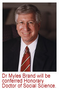 Dr Myles Brand, a scholar, philosopher and educator, is President of Indiana University and Chairman of the Big Ten Council of Presidents/Chancellors. Since assuming the presidency in 1994, Dr Brand has launched a series of reforms that has seen