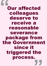 A. While advising that the Council phase out the respective UGC-funded AD programmes according to the UGC accelerated schedule, we are determined to implement a smooth "winding down" arrangement for our colleagues. The University will seek assistance from the Government to offer a compensation package to those whose careers have been negatively affected. Our affected colleagues deserve to receive a reasonable severance package from the Government since it triggered the process. With adequate compensation, some, if not all, of the staff may rejoin our AD programmes in a "re-incarnated" format.