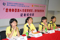 From 13 to 21 March, the Working Group, with the help of 14 South Asian students from Sir Ellis Kadoorie Secondary School, interviewed 402 South Asians for the survey. On 8 June, the results were announced to the press. If not for the occurrence of SARS, their research findings would have been compiled and released earlier. "When you consider the voluntary nature of participation, the need to prepare for examinations and to hand in numerous papers during the period, what they have achieved is amazing. I am particularly touched by the concern they've shown for a group of underprivileged people in Hong Kong," said Dr Kam.