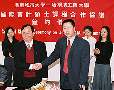 To meet this growing need, CityU's Department of Accountancy (AC), with the help of sister departments in the Faculty of Business, the Department of Economics and Finance, in particular, boldly ventured north. On 13 December, the Department signed an agreement with the Harbin Institute of Technology (HIT) on a joint Master of Arts in International Accounting (MAIA) programme, to be offered in Shenzhen.
