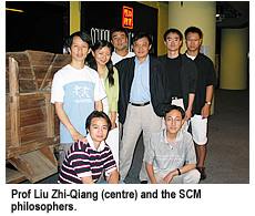 exchanging tech manuals and multimedia software applications for scholarly texts on western and Chinese philosophy. The Readers Club, brainchild of SCM Professor Liu Zhi-Qiang, meets every Monday morning in the Centre for Media Technology where budding intellectuals hammer out ideas on philosophy, history, religion and cultural studies.