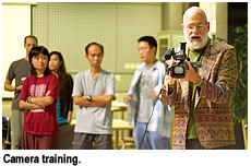 first-year MFA student Marco Chong Chun-man said, "and everything was new to me. " Professor Kagan discouraged the six SCM participants from using scenes from known movies. "We even had to cast our two scenes with actors beforehand and provide our own camera crew, sound boom person and digital video equipment,” another student added. "One major challenge was the tight schedule. Since it was a summer intensive course, we needed to prepare everything within a very short time. However, I consider it very good training, because in the real world we also face such constraints. Plus," Marco said, "Professor Kagan and SCM Assistant Professor Mr David Yip came back on Sunday to give us an extra lesson."