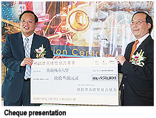 CityU’s Industrial Attachment Scheme (IAS) celebrated another successful year in a ceremony held at the City Top resaturant on campus, 23 September. One of the highlights was the presentation of a HK$930,000 cheque to the IAS from the Drs Richard Charles and Esther Yewpick Lee Charitable Foundation.