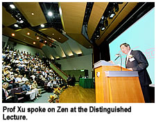 study of the meaning of the languages of the past, Professor Xu chose to speak on Zen from an observer's perspective. “Religion was a difficult topic,” he said, “but throughout my years of study of Chinese languages and culture, I realized that knowledge of Buddhist teachings, and Buddhism's development and spread is important to my understanding of the meaning of languages and culture.”