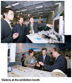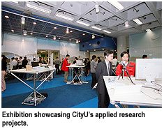 The exhibits include a wide range of applied research projects, such as an organic electroluminescent display, a Lidar System for atmospheric aerosol and cloud profiling, smartcard technology, development of lightweight concrete, Omega-3 fatty acid products, Plasma Ion implantation technology, mobile communication systems and base station antennae, energy-saving lighting and dimming technology and the visible tone and intonation of self-correcting Putonghua Computer Aided Instruction system. Also on display are the products and services of 36 companies incubated by CityU Enterprises Ltd, in the areas of biotechnology, pharmaceuticals, telecommunications, software and solution integration, mechanical engineering and automation, innovative technology solutions and new materials.