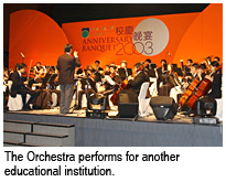 The founder of the Orchestra, Mr Law Wing-kin, is grateful for the dedication of his successors who continue to live up to the Orchestra's mission and are raising the Orchestra to new heights. Mr Law, who graduated from CityU several years ago, is still an active member of the Orchestra. “My interest in music and my affiliation with the Orchestra give me the incentive to stay close to CityU,” Mr Law said. “The Orchestra is better than ever.” Mr Law also appreciates CityU's financial support of the Orchestra, the provisions of large instruments and a practice venue, and hiring of a conductor.
