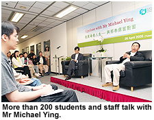 Miss Yeung Mei Ling, a third-year Accountancy student, said that Mr Ying was a good role model. "Through this sharing," she commented, "I learned that when we face a problem, we should adopt a straightforward approach."