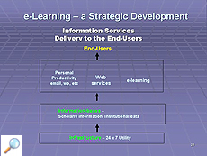 Today, as an exemplar in the application of IT, CityU continues evolving its campus environment, within which IT functions as a natural support to academic and administrative activities. Multiple locally-developed systems, such as the one developed by the Chinese Civilisation Centre, are used on campus. However, the University community will benefit immensely once a common e-learning platform has been established. "Our main business is student learning. Therefore, our first priority in the next five years is the full-scale deployment of IT to support this," Dr Yu said. "Deployment of a single e-learning platform will focus the University's efforts, bringing together the constituents and consolidating the resources devoted to teaching and learning."