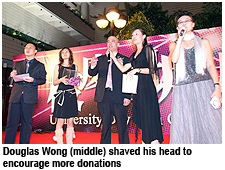 Donation began right at the CityU banquet, and SU President Douglas Wong kept his promise to shave his head after the number of donors reached 800.