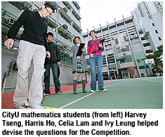 The four MA undergraduates who devised the questions—Harris Ho, Celia Lam, Ivy Leung, and Harvey Tseng—said they were able to apply successfully what they had learned at CityU to devising questions for the contest. Harris Ho said when developing the math trail activities, they incorporated cases from everyday life such as calculating the area of the school playground and the fare saved using an Octopus Card. "Coming up with questions for primary school kids is challenging. We had to consider whether the questions were too difficult and what possible mistakes contestants would make. As a result, I have acquired practical skills in devising questions in real life," he added.