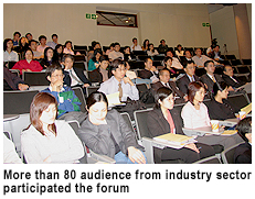 More than 150 members of the CityU Business & Industrial Club (CUBIC), which is organized by TTO, attended the forum. The Club fosters links between the University and industry.TTO Director Mr H Y Wong encouraged more people to join the Club. “You can take part free-of-charge in seminars, workshops or job placement programmes organized by CityU. This can enhance your competitive edge,” he said. Future TTO forums will cover Information Management and Security, and Advanced Surface Coating.