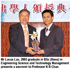 Mr Lucus Lau, 2003 graduate in BSc (Hons) in Engineering Science and Technology Management, participated in CES in his final year. He worked at the Dongguan subsidiary of Surface Mount Technology (Holdings) Limited. During his placement, Lucus learned a great deal about manufacturing management systems and had plenty of opportunities to improve and build upon his management skills. He worked well during this period and the company recruited him after he graduated and he is now working as a Project Engineer.