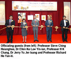 Walking into the Run Run Shaw Library at City University of Hong Kong (CityU), you will sense a unique cultural ambiance. A total of 58 paintings, calligraphy, sketches and pottery created by CityU people for the “Exhibition of Art Works by Members of CityU Community” are on display at the Library. The exhibition, the first of its kind at the University, exemplifies the passion for the arts among the CityU community. The aim of the exhibition, co-organized by the Library and the Human Resources Office, is to cultivate greater interest in the arts for whole-person development among the campus community. CityU values the spirit of science and the humanities and strives to nurture a proactive interest in the arts. Officiating at the opening ceremony, which kicked off on 6 July, were Professor H K Chang, University President; Professor Richard Ho Yan-ki, Vice-President for Undergraduate Education; Dr Ellen Ko Law Yin-lan, Acting Vice-President for Administration and Director of Human Resources; Dr Jerry Yu Jer-tsang, Chief Information Officer; and Professor Steve Ching Hsianghoo, University Librarian.Professor Ho, Dr Andy Chun Hon-wai, Associate Professor in the Department of Computer Science, and Mr Arthur Leung Tat-yung, Director of Campus Planning, shared their experiences of the arts at a session entitled “Sharing the Experience of Art” after the ceremony. Dr Ma Ka-fai, Assistant Director of the Chinese Civilisation Centre, moderated the session. Professor Ho, who has been painting for many years and considers it part of his life, said he painted every week, letting his emotions flow freely and gaining new insights, not just into art, but also into teaching and administrative work. Mr Leung drew his sketches during a trip to a village in North Wales, while Dr Chun’s contributions included his own and those of his son and daughter. Painting not only helped reduce pressure and inspire creativity; it also enhanced family relationships and communication, Dr Chun said. Professor Chang said he was very pleased to take part in the exhibition and the sharing session, adding that such activities created an intellectually rich campus. “This is what every university needs,” Professor Chang said. “CityU is committed to a modern professional education, buttressed by deep-rooted humanistic values. We place great emphasis on exposing members of the University community to the wider world of scholarship in the arts and sciences, and we encourage people to share their enthusiasm for the arts,” he said. Other contributors to the exhibition included Dr Cheung Ho-ming , Assistant Professor in the Department of English and Communication; Ms Penni Cheng Kwan-ling, Library Assistant I; Professor (Chair) Horace Ip Ho-shing in the Department of Computer Science; Ms Teresa To Wan-fun, Senior Assistant Librarian; Lady Ivy Wu; and Professor (Chair) Zhang Longxi, Director of the Centre for Cross-Cultural Studies. The exhibition runs in the Library Lobby until 6 August. The art is available for viewing at: http://www.22kk77.xyz/lib/about/event/ex_cityu_art/index.htm. |