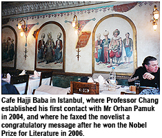 Shortly after the interview with Bilkent News, Professor Chang heard the good news that his friend whom he had first come to know after reading My Name is Red had won literature’s greatest prize. Eager to pass on his good wishes, Professor Chang faxed off a congratulatory message—Mr Pamuk was teaching at Columbia University in the US at the time—from Cafe Hajji Baba in Istanbul where the two had first made contact nearly three years ago, also via fax.
