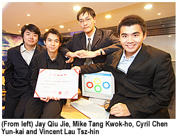 CityU’s award-winning contribution was System Analysis of Lion Hill IT Consulting Firm, which targets poor service quality and low work efficiency in two- to three-star hotels on the mainland. It was devised by Cyril Chen Yun-kai and Jay Qiu Jie, Year 2 students in the Departments of Accountancy and Information Systems respectively, and Vincent Lau Tsz-hin and Mike Tang Kwok-ho, Year 3 students in the Department of Marketing.