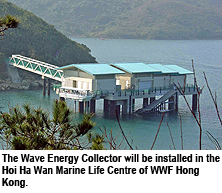 The Wave Energy Collector, which includes one energy collection unit, a power generation unit and storage, will be installed in the Hoi Ha Wan Marine Life Centre run by the WWF Hong Kong. The centre is positioned above sea-level and makes it an ideal place for collecting wave energy. The device works by the air compressor inside the collection unit generating energy as the water rises and falls.