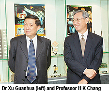 Dr Xu was accompanied on his visit to the Laboratory by Professor H K Chang, University President; Professor Chan Chi-hou, Dean of the Faculty of Science and Engineering; Dr Xue Quan, Director of the Applied Electromagnetics Laboratory; and Dr Zhu Guobin, Director of the External Liaison and Cooperation Office.