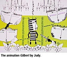 In Judy's film, the eponymous Gilbert wakes up and goes out to buy a pack of cigarettes. Inside he finds a map leading to some treasure. He follows the trail and on the way falls down a secret tunnel where he meets four princesses. They possess the secret to eternal youth but are, unfortunately, penniless. To get money, they steal from people that they lure to their castle using the maps placed in the cigarette packs.