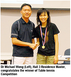 background does not hinder friendship. What we need is to communicate and to interact. When we understand each other better, we can broaden our network of friends and enrich our university lives,” said Guomin, one of the organizers of this year’s competitions. Dr Michael Wong Chak-shum, Hall 3 Residence Master, said students liked to mix with young people from around the world. “Seeing this, we believe we have already achieved the aims of holding these inter-hall activities,” he said.