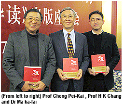 opening another door for more young people to appreciate the treasures of Chinese culture. The original version was selected as one of the “Ten Recommended Books” for 2002 by Radio Television Hong Kong. Chinese Civilisation: a source book was originally a guidebook intended for students taking CityU’s General Education (GE) course. Published by the Joint Publishing Company, the book has been compiled by scholars from the mainland , Taiwan and Hong Kong. The book is especially useful as an introduction for university-level Chinese Civilisation courses. CityU and the publisher held a seminar in Beijing on Jan 10th under the theme “Traditional culture, education and the general education - the publication of Chinese Civilisation: a source book”. Guests included Mr Xu Jialu, the Vice-Chairman of the Standing Committee of the National People’s Congress, and experts from cultural and educational sectors. They discussed topics relevant to cultural heritage and general education. At the seminar, Professor H K Chang, University President, said even though most courses at CityU fell into the science, engineering, applied science, management and marketing camps, the humanities and general knowledge were ‘must’ elements for professionals in the 21st century. Thus CityU set up the Chinese Civilisation Centre in 1998 to promote general education in this field. “We are entering a highly developed information and technology era,” Professor Chang said. “If we don't use creative means to learn about the rich Chinese culture, one that spans thousand of years, our efforts may be wasted.” The Chinese Civilisation courses at CityU were developed to merge the old and the new, to integrate traditional Chinese culture and contemporary needs, Professor Chang continued. He pointed out that Chinese Civilisation: a source book was written by numerous scholars and had been in use at CityU for six years. Mr Xu, who has visited CityU campus before, praised the book, recommending that anyone who thought Hong Kong was a cultural desert should visit the Chinese Civilisation Centre at CityU for a new perspective. He hoped that the text would act as spiritual food for mainland students and people who love Chinese culture. “The most important thing is the leading ant with sand in its mouth will be followed by troops of ants that will construct the cultural castle,’ he said.Last but not least, Mr Zhang Weimin, the Acting General Manager of Joint Publishing Company, said the book was concise and comprehensive, with an interesting background on history and containing topics of special interest, photos and diagrams. He said the new publication used visual means to help the reader understand Chinese culture, and he described it as a “good textbook for General Education at university and excellent reading material for learning about Chinese culture”. |