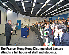 Professor H K Chang, President of CityU, said in the opening speech: “It is the honour and indeed good fortune for CityU to have such a connection with the science community in France.” He called on the French Consulate General to continue to help enlighten Hong Kong society with similarly inspiring lectures in the future. “Intellectual life in Hong Kong is already good but would improve with closer connections to world-famous historical institutions such as the French Academy of Sciences and Collège de France,” he said.
