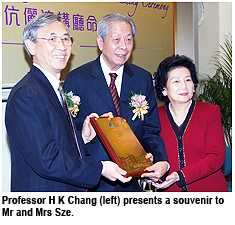 Professor H K Chang, President of CityU, expressed his deep thanks to Mr Sze for his generous support to CityU and the education sector. "Mr Sze is devoted to education development and he believes that nurturing youngsters into outstanding leaders will benefit society. His donations to CityU will help fund University development and establish scholarships for students who have an outstanding academic record," he said.