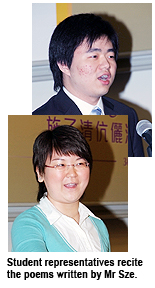 Student representatives recited two poems written by Mr Sze to acknowledge his generous support to CityU.