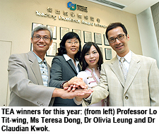 The TEA 2006-07 winners will receive their awards at the Congregation in November this year, and their names will be engraved on a TEA Plaque at the entrance of the University's Academic Building.