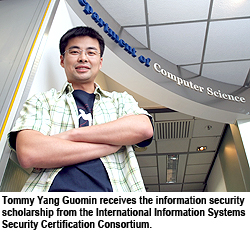 Tommy Yang Guomin, a Computer Science PhD student at City University of Hong Kong (CityU), has been offered an international scholarship by the International Information Systems Security Certification Consortium (ISC)2. He is one of eight awardees worldwide and the only one from Hong Kong to receive the award this year.
