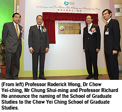 Professor Richard Ho Yan-ki, Acting President of CityU, thanked Dr Chow for his support. "All staff and students will work hard to raise the standard and quality of CityU in order to repay Dr Chow," he said.