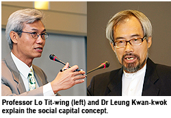 Dr Leung Kwok-kwan, Director of CityU’s Quality Evaluation Centre, said the concept of social capital was one of the four major driving forces in the development of modern society. It referred to the institutions, relationships and norms that shape the quality and quantity of a society's social interactions. In other words, social capital is not just the sum of the institutions which underpin a society; it is the glue that holds them together.