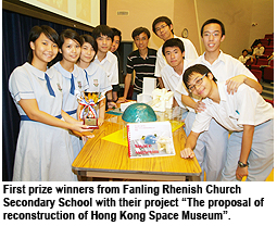 This year’s champion project was the “Reconstruction of Hong Kong Space Museum” proposal by Form 7 students from Fanling Rhenish Church Secondary School. Mr Lo Kin-cheung, the teacher who led the team, said the students had demonstrated great team spirit.