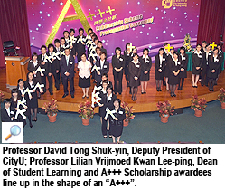 City University of Hong Kong (CityU) held the A+++ Scholarship Schemes presentation ceremony on 24 October and awarded scholarships to 44 first-year students who had registered outstanding academic and sporting achievements. Forty-four newly-recruited students, together with parents and secondary school principals and teachers shared in the joy of the awards ceremony. Professor David Tong Shuk-yin, Deputy President, said it was encouraging that so many students were awarded the A+++ Scholarships. "The recipients have increased 57% compared to last year and it shows that the quality of CityU's undergraduate students also improves. I hope students can make use of these three years to gear themselves up and prepare for the challenges of the future," Professor Tong said.