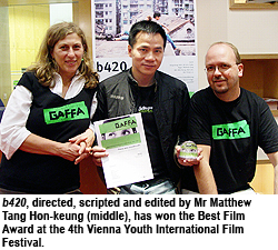Other achievements of b420 include: Grand Prix in the 19th Fukuoka Film Festival, one of the official selections at the 52nd Sydney Film Festival and 2005 Munich Film Festival, and the opening film at the 2005 Hong Kong Asian Film Festival.