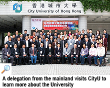 A delegation comprising forty-six personnel from mainland provincial bureaux and secondary schools from fifteen provinces paid a visit to CityU on 22 November to learn more about next year's admission exercise and to tour the campus. CityU conducted its first student recruitment exercise in the five provinces of Hebei, Heilongjiang, Shanxi, Jilin and Anhui through the National College Joint Entrance Examination Scheme in 2007. As a part of a reciprocal arrangement, the five provinces recently sent representatives of their admission and examination offices and examination administration centres to join a delegation visiting CityU. Also included in the delegation were principals, registrars and teachers of 31 leading secondary schools from 15 provinces and cities.