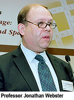 language increasing by 15% in ten years to 45% of the population in 2006. At the same time, as Professor Halliday correctly envisioned, Putonghua is likewise gaining in popularity, with the proportion of the population who are able to speak Putonghua increasing from 25% to 40% in the same period,” he said.Professor Webster welcomed the first plenary speaker, Professor M.A.K. Halliday, Emeritus Professor of Linguistics at the University of Sydney and adviser to HCLS of CityU, whom he described as “the world-renowned linguist who for more than half a century has been enriching the discipline of linguistics and its application in areas such as education, computer science and policy-making.”