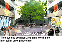 “Intimate neighbourhood relationships could be found among early public housing residents. They usually opened their doors and prepared meals in the corridor. Our idea is to recreate such relationships,” said Alex. Their design has a spacious common area with kitchen, laundry room and entertainment room that aims to enhance interaction among travellers.