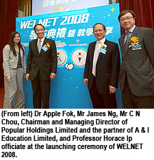 English is the first subject adopted in the WELNET system. To date, 35 primary schools are using the system and many of them used it for teaching and assigning homework during class suspension due to a flu outbreak last month. The system takes advantage of information technology to promote learning with added flexibility in regard to time and space.Dr Apple Fok Wai-ping, the system developer and a graduate and research fellow of CityU’s Department of Computer Science, said WELNET would cover Chinese and General Studies in 2008-09, and would later extend to Mathematics and secondary school education.