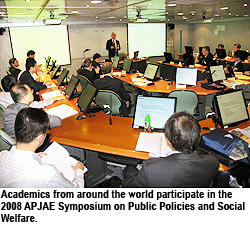 The first conference that opened on 16 May was the 2008 APJAE (Asia-Pacific Journal of Accounting and Economics) Symposium on Public Policies and Social Welfare, jointly organised by CityU's Department of Economics and Finance, the Research Centre for International Economics, and the College of Social Sciences, National Taiwan University.