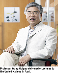 Professor Wang’s lectures were recorded in a webcast studio at the UN in April. The theme, “Redefining Sovereignty in the Globalised World”, comprised two parts of 45 minutes each. The bilingual recordings will be available from October, free-of-charge, via the UN’s internet home page.