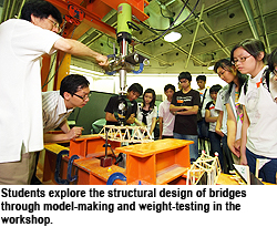 Leung Chun-sing, Form 4 student of Ho Lap College, has had an interest in physics since primary school. "I can sample the different disciplines of science through the workshops and have a fruitful summer holiday," he said. Fung Hon-leung and Yuen Man-lai, both Form 6 students of HKTA Ching Chung Secondary School, said they appreciated the state-of-the-art facilities of CityU's laboratories. "The CityU environment is very energetic," said Fung Hon-leung.
