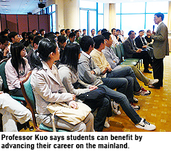Professor Kuo invited students to ask him questions as soon as the meeting began. The gathering of more than one hour was conducted in a very relaxed atmosphere, covering diverse topics such as prospects for higher degree graduates, the development of CityU and career opportunities in the mainland.