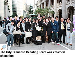 Adding to the credibility of the victory was the fact the competition was held at the end of semester when the team members were busy with examinations and preparing their thesis and reports. "The competition was a lesson in the importance of time management -- how to steal time from our tight schedule to prepare for the competition," said Jimmy, who was concluding speaker and Chairman of the CityU Chinese Debating Team.