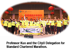 Professor Kuo also presented a flag to the CityU Delegation for Standard Chartered Marathon to wish them success in the forthcoming competition. Mrs Dorothy Davis, Associate Director of Student Development Services, announced that the number of CityU runners had already reached 639, exceeding its target of 625.