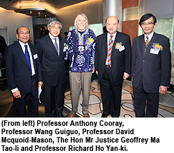Inauguration guests at the conference are Professor David Mcquoid-Mason, President of CLEA; The Hon Mr Justice Geoffrey Ma Tao-li, Chief Judge of the High Court, Professor Richard Ho Yan-ki, Provost of CityU; Professor Wang Guiguo, Dean of SLW and Professor Anthony Cooray, Associate Dean of SLW and the Conference Chairman.